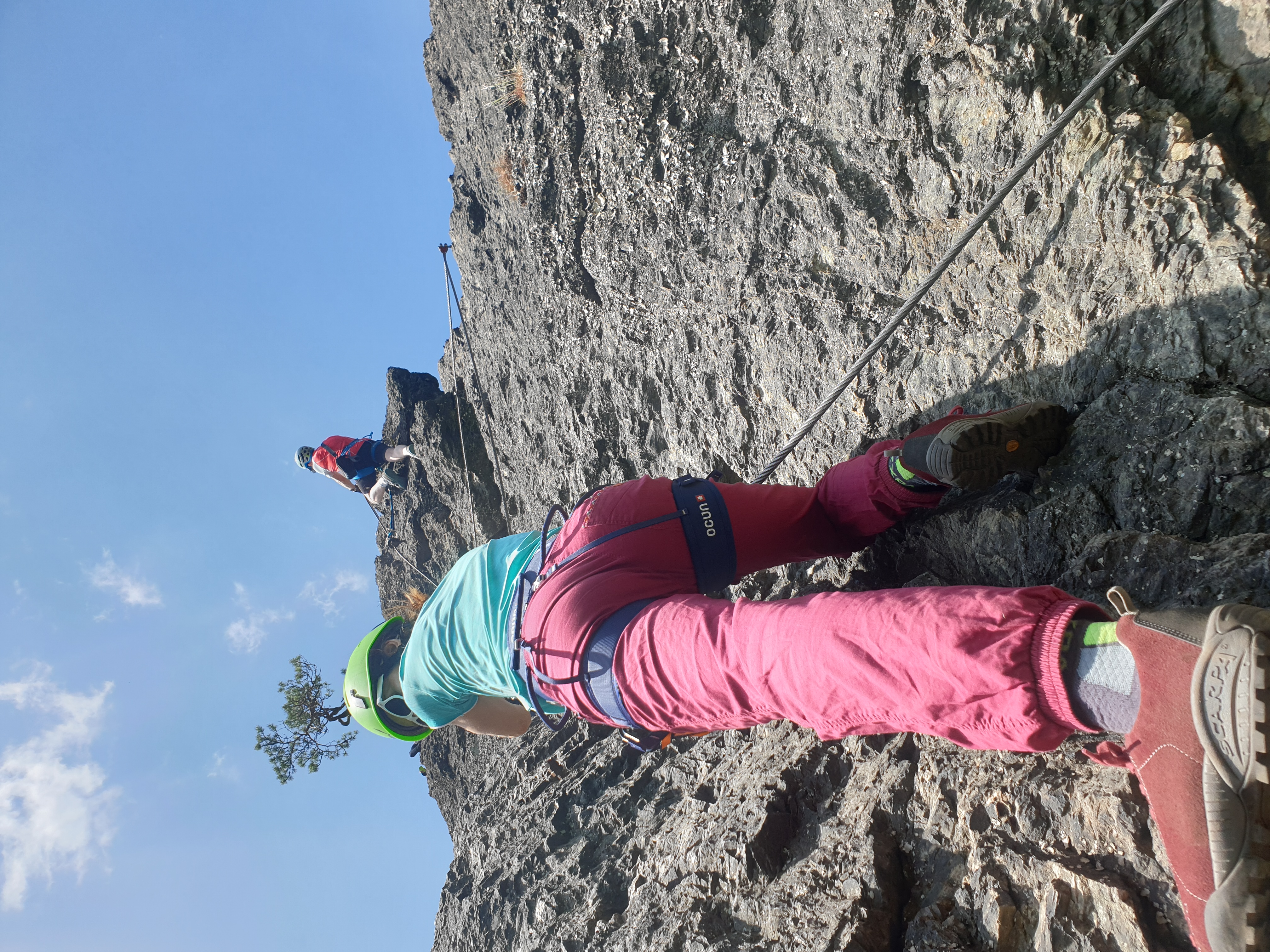 Naszą przygodę zaczynamy od ferraty oznaczonej kolorem niebieskim (B/C). Mimo że ta droga zaczyna się pionowym podejściem, to już po chwili przechodzi w łatwy trawers, bez dużej ekspozycji, co ułatwia nam zaznajomienie się z tego typu przygodami.
